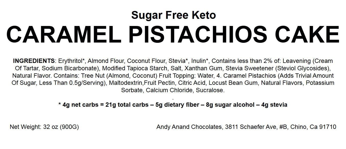 Experience the delicious flavor of our bakery-fresh Sugar Free Keto Caramel Pistachios Cake, a mouth-watering treat with a rich taste that will surprise and delight.